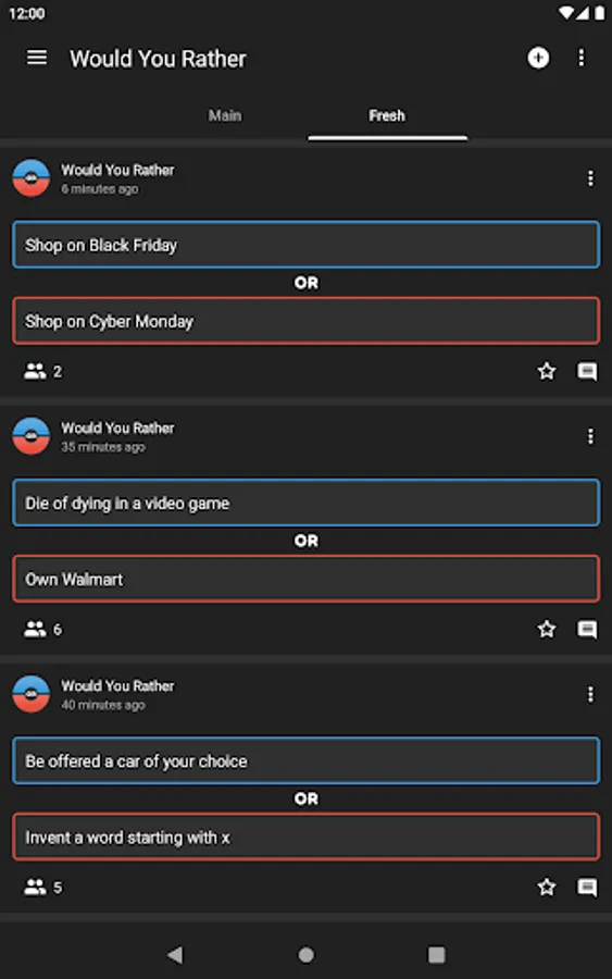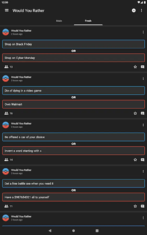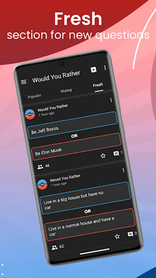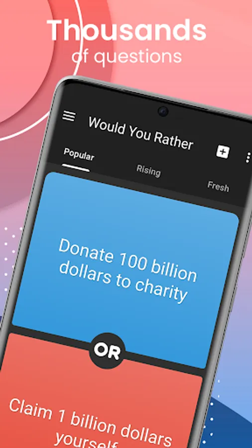 •Explore thousands of thought-provoking "Would you rather" or "this or that" questions
