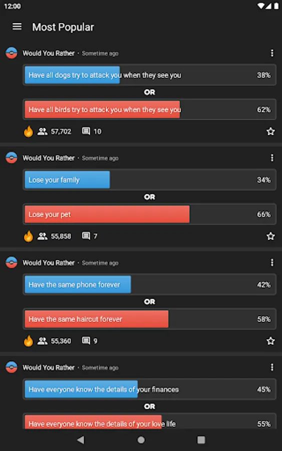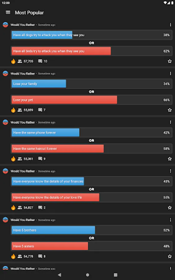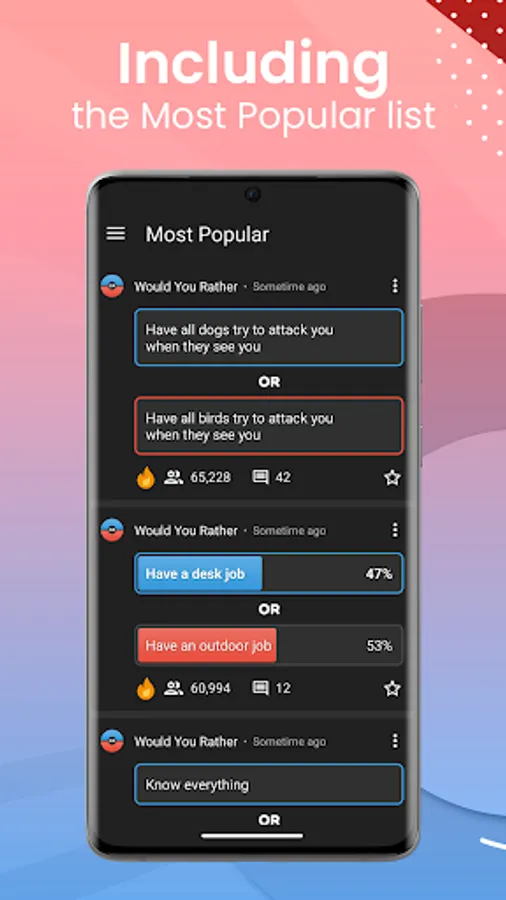 •Check out the most popular dilemmas and see what others prefer