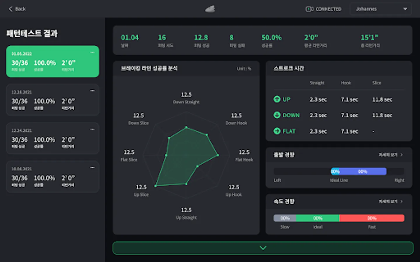 Player can check whether you improve skill for a particular period of time. Statstic offers a variaty of datas about success rate by putting distance and breaking line, precision.