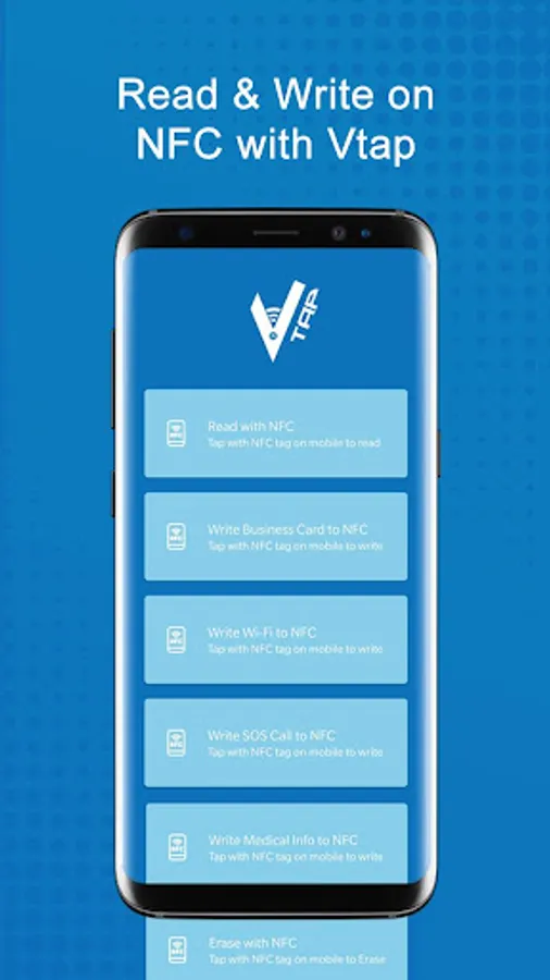 V-Tap is a tap-and-share application that is aimed at making it easy and efficient to share digital information using NFC technology between devices and people. It is easy to use while no advanced programming techniques are needed to create your own digital business card, digital medical bracelet, SOS emergency calling automation, securely pair and connect people to to your Wi-Fi network and perform various digital checking using NFC technology.