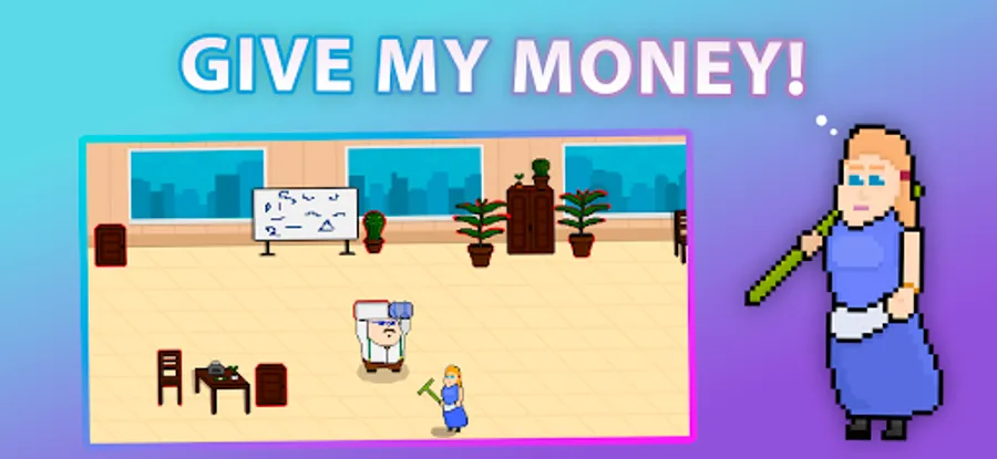 Революция в офисе. Ваша компания только что разорилась! Но не время листать отчёты о убытках - работники решили воспользоваться возможностью и отомстить вам за всё. Главный зал забаррикадирован. Держите оборону столько, сколько сможете. Берите и кидайте стулья, кактусы, тумбы - всё, что попадётся под руку. Продержитесь до прихода страховой службы. Удачи!