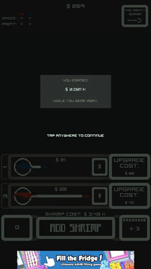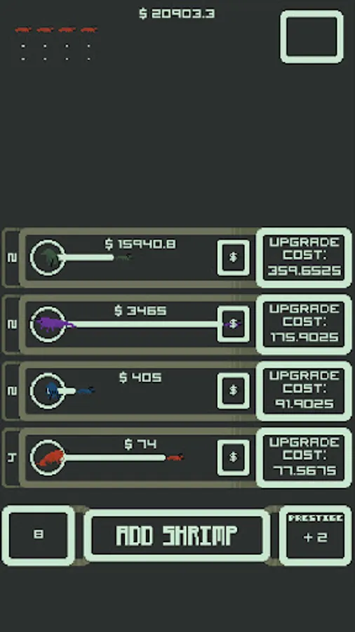 A casual idle game that involves shrimp. Has a clicker section for those who want slightly more interactive gameplay.