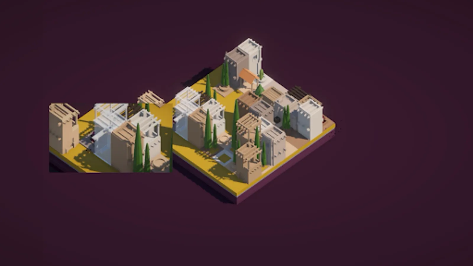 When you start the game gives you a 4x4 up to 12x12 block island, and the colors of the Roofs, Water, Grass, and Trees, are randomly picked.