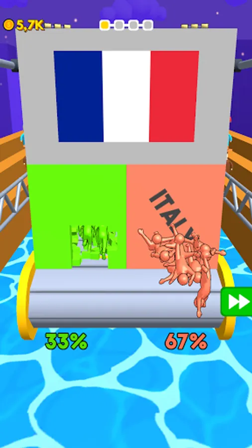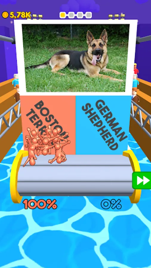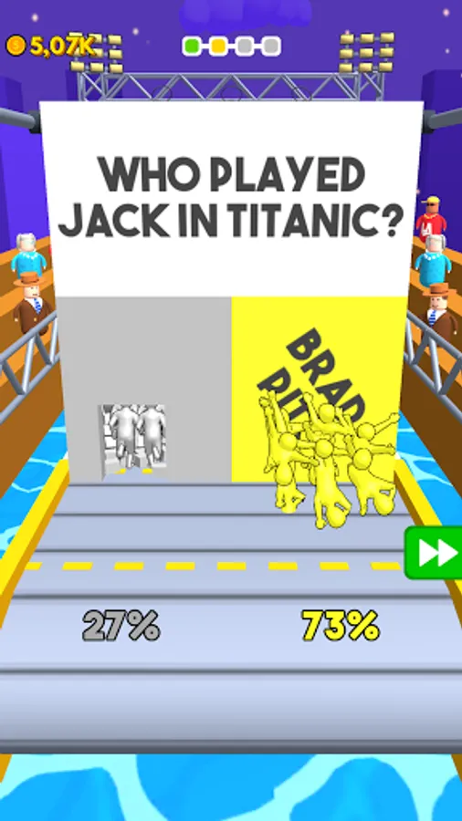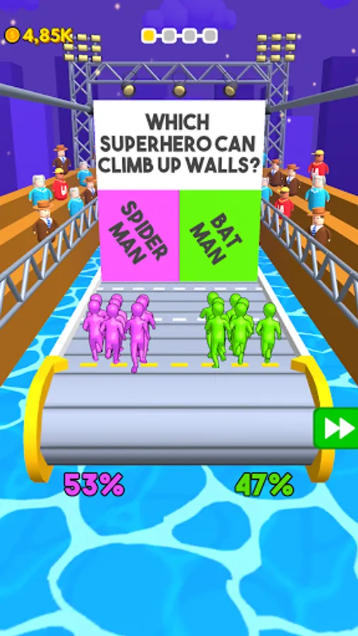 You controll the crowd and choosing between two answers. Your goal is to save as much as possible crowd people to earn more money.