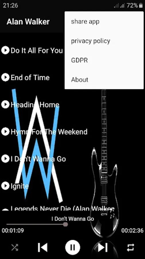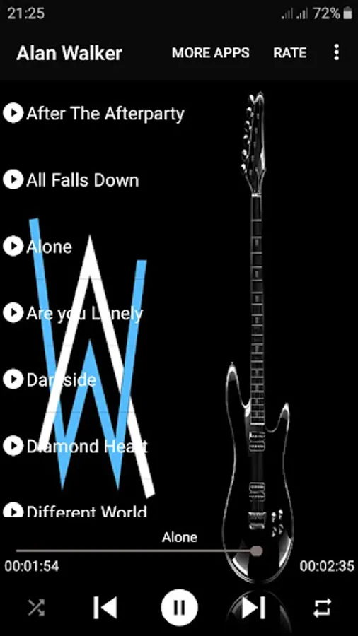 In this app you will find the best songs and new releases from Alan Walker. Download the free app on your smartphones for an unlimited time and enjoy the best songs in high quality audio and without internet.