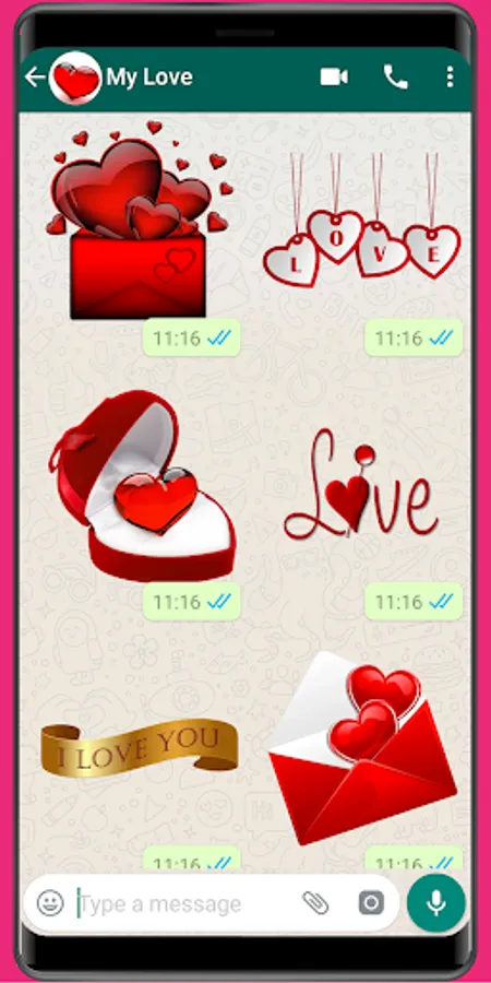 Use stickers for WASticker and add love stickers, amor Stickers, romantic stickers, heart stickers and I Love You stickers to your chat.