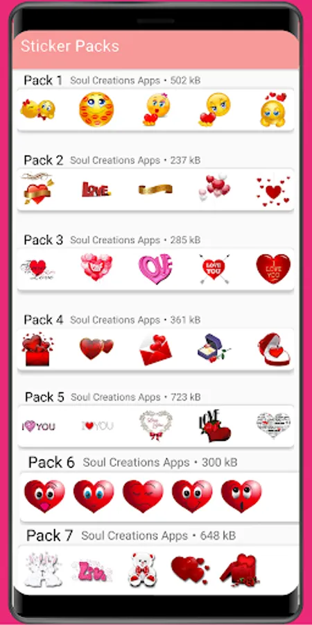 Download and open WAStickerApps romantic stickers