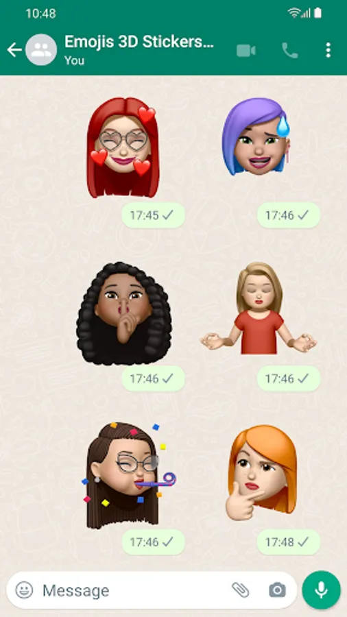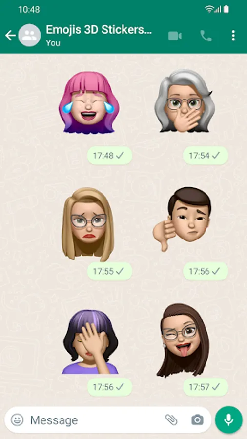 3D emoji stickers for WhatsApp are perfect for expressing your moods through a sticker. Each pack of stickers contains emojis expressing different moods, you will always have one to choose from!