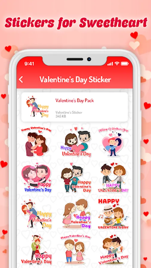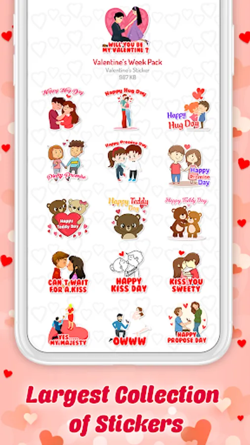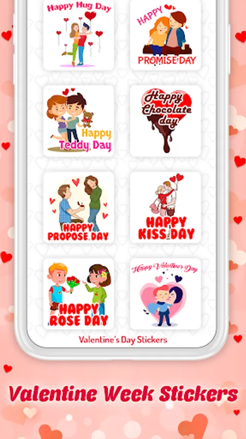Rose day, Propose day, Chocolate day, Teddy day, Promise day, Hug day, Kiss day, love hearts and more WASticker packs will be added in future.