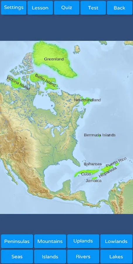 - 4 islands, 7 rivers, 1 Mountain Range, 3 lakes, 1 peninsula, 4 uplands, 3 lowlands, 2 seas
