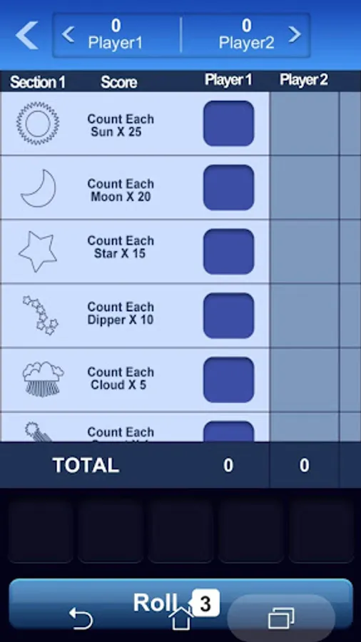 Celestialzy plays like yahtzee with 5 dice where you try to score the highest points from dice combinations. Play with up to 6 players.