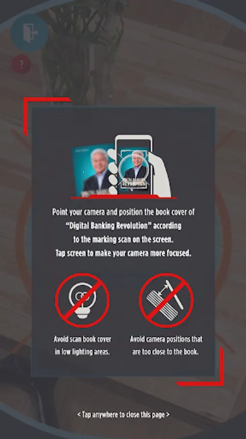 • Face phone/tablet’s camera to the front cover of the Digital Banking Revolution book.