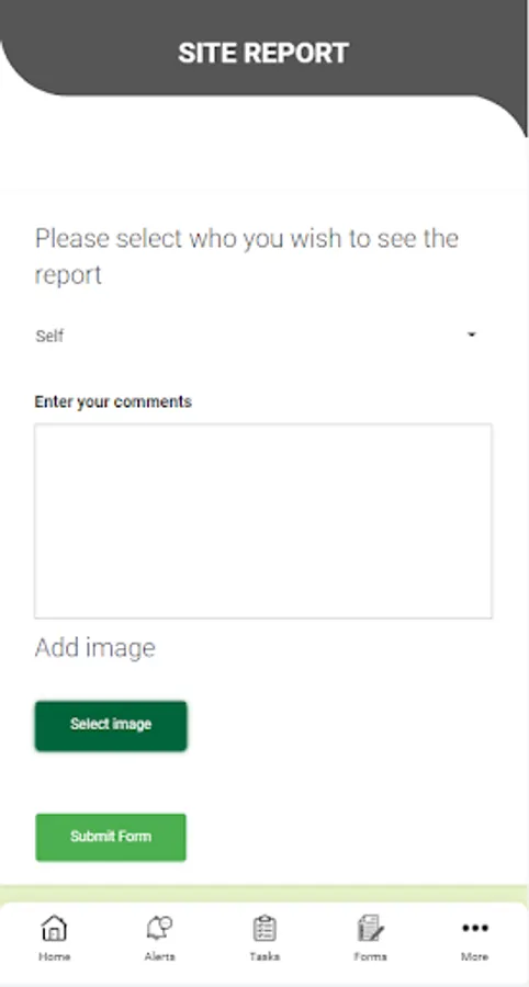 Once the user signs into a site, the user is able to read any alerts, notification and advise for all visitors. The user is also able to complete set task by the site, their own company, provide Site and safety report and any form that they have been assigned.