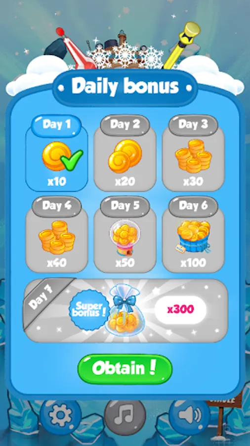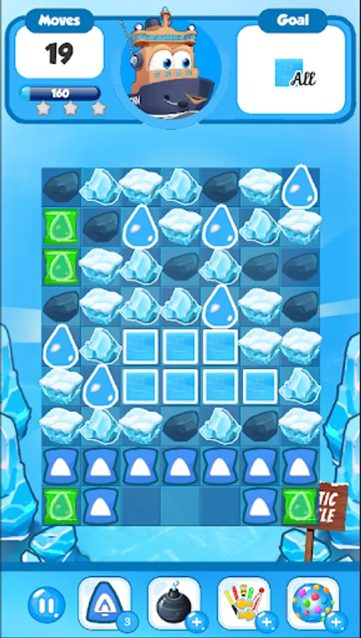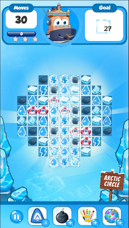Switch and match icy cubes 3 or more in a row. Boosters are available to make your way through tricky situations and make your game even more exciting! You are faced with different tasks in different levels: collect items, fight your way against the clock and meet your goal before you run out of moves. Don’t let the icy wind freeze your quick thinking!