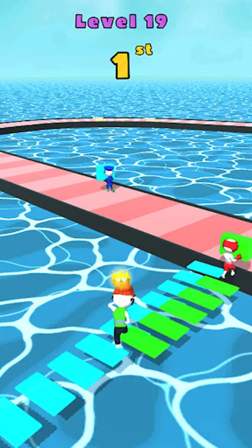 Get ahead of the competition by collecting all floorboards along the way. The main goal of the game is to reach the finish line first. You can use short ways to stand out in the race. Now gather the boards and build bridges using them. Shorten the roads by going to the shortcut you created yourself. Take care not to fall into water when using short paths. Otherwise you may have to start over. When you complete the race first, you can earn extra rewards.