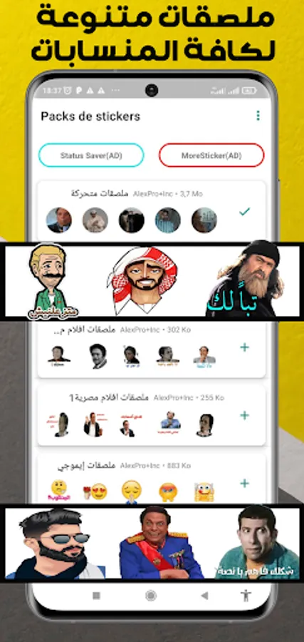 Arabic Whatz Stickers is an Arabic app that has a variety of stickers, ranging from funny stickers and many other categories that you can share with your friends and family.