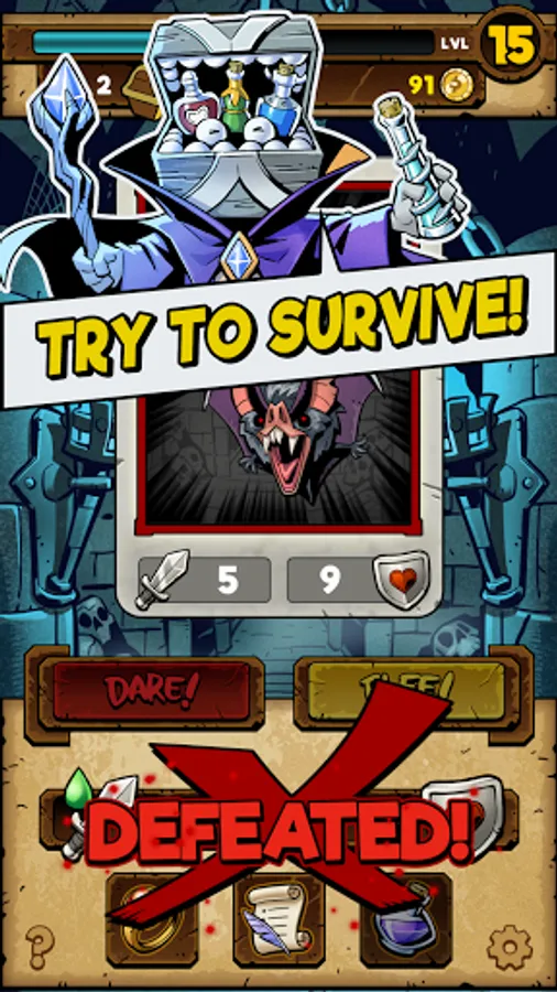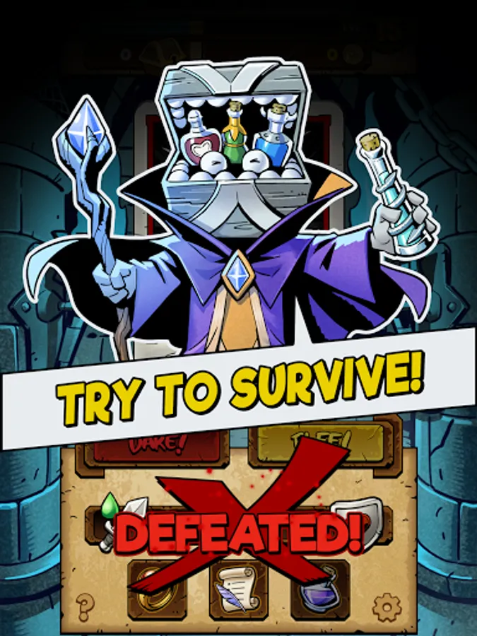 Dive deep into dungeons in this Card Battle RPG. If you are defeated, you lose everything you gained in that dungeon. The big question is, do you "Dare to Dungeon" or do you flee with what you've gained? You decide when enough is enough in this exhilarating game of "chicken" between you and the dungeon.