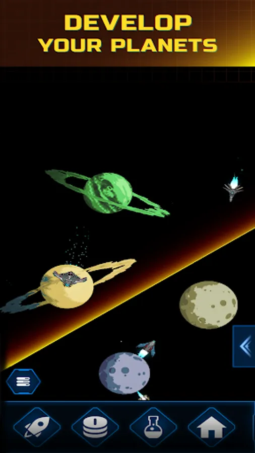 Use strategy to decide which planets to develop, which ships to build and where to deploy them, and which advancements to research. Spend resources to unlock upgrades, build up your mothership, and discover new planets to exploit.