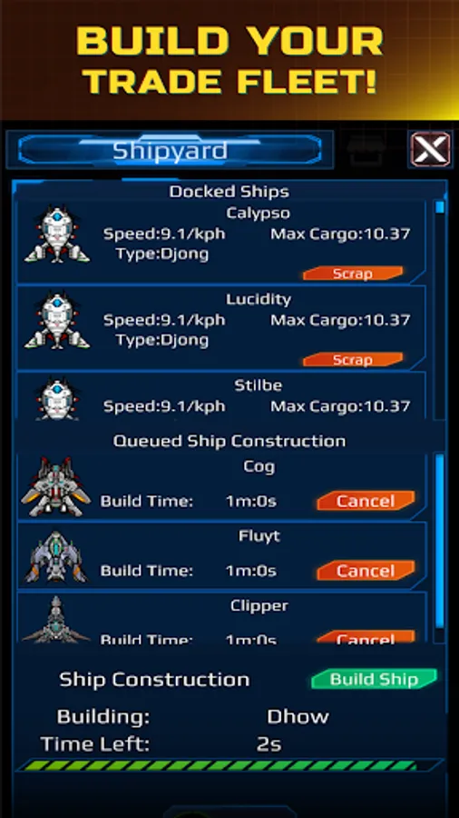 • Build trade ships to set up a complicated web of supply routes between your space colonies