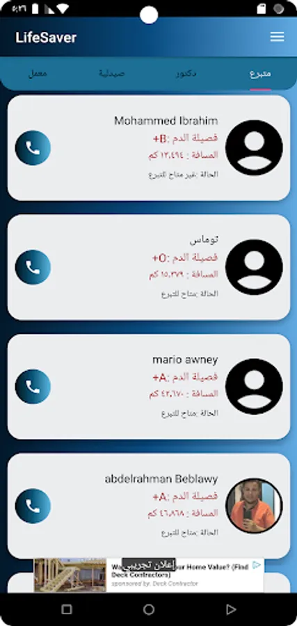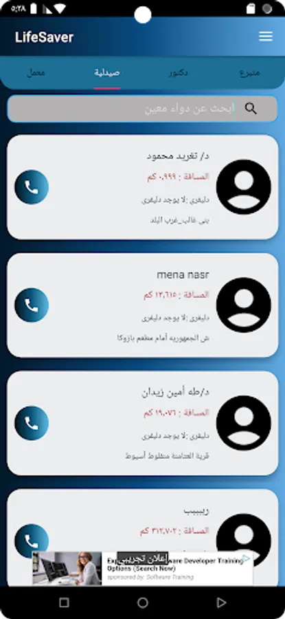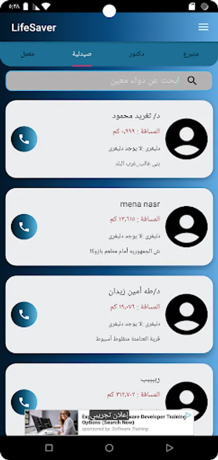 It is an application dedicated to helping people reach blood donors close to them, as well as nearby doctors, labs, as well as pharmacies and their contents, displaying their data and arranging them according to the closest to them
