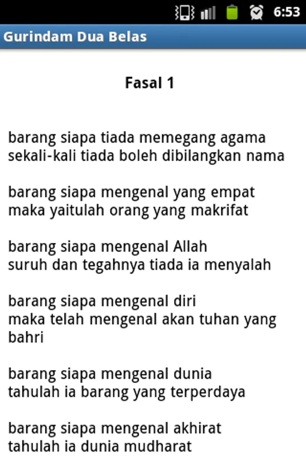 This application also contains Poetry Advice to Children and Poetry Sinar Gemala Mestika Alam which is the work of his.