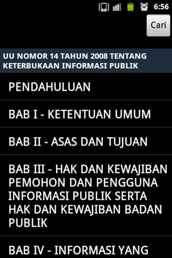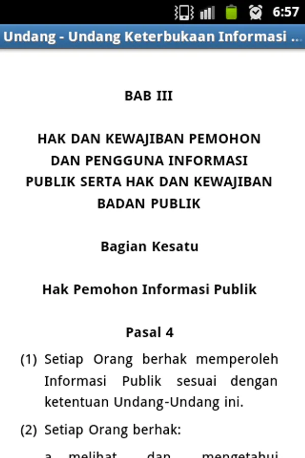 Undang-Undang Keterbukaan Informasi Publik (Undang-Undang Nomor 14 Tahun 2008) dalam format yang mudah dibaca di device android