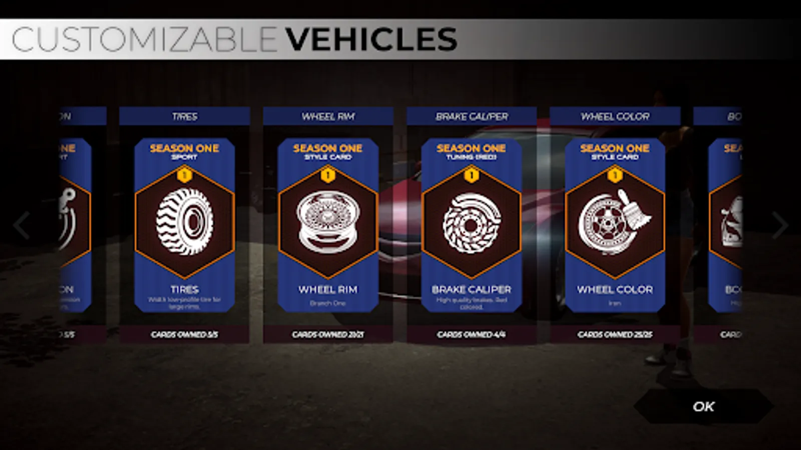Create your personal dream car from a variety of paints, rims, tires and more.