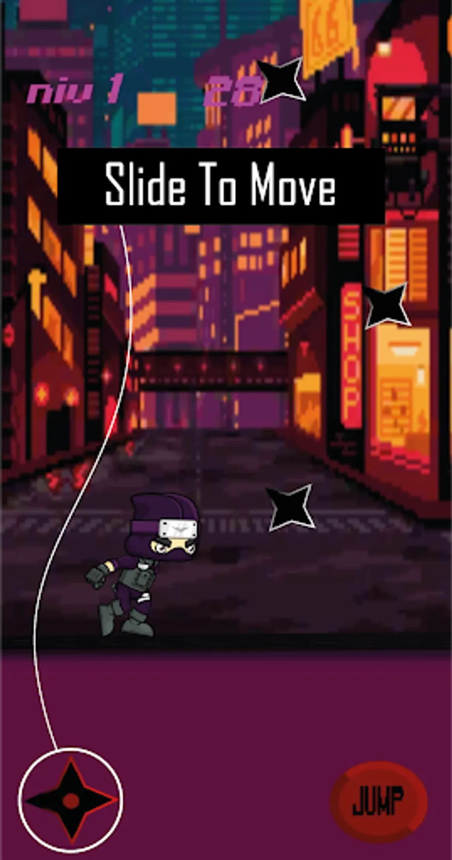 You can move with the shuriken-shaped joystick and jump with the jump button