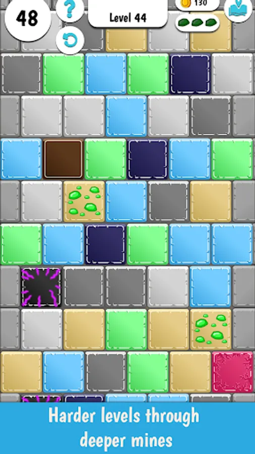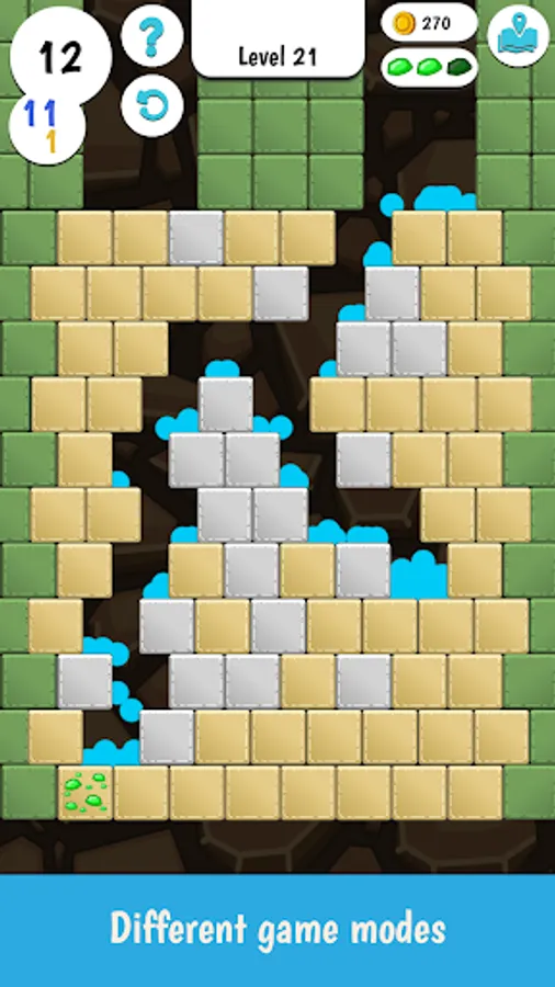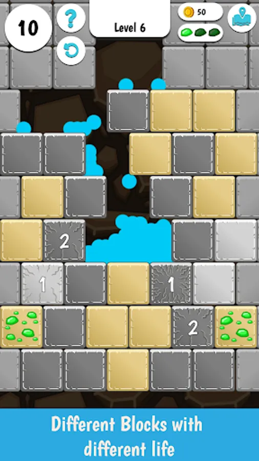 In diesem Mining Puzzle Spiel verschlägt es dich tief in eine Mine. Hilf den Bergbauern an das Wasser heran zu kommen. Tippe auf die Blöcke um sie zu zerstören und grabe dich durch die verschiedenen Blöcke. Mache den Weg frei damit das Wasser fließen kann. Dabei musst du den richtigen Weg durch die Mine finden, denn du kannst nur eine bestimmte Anzahl an Blöcken zerstören.