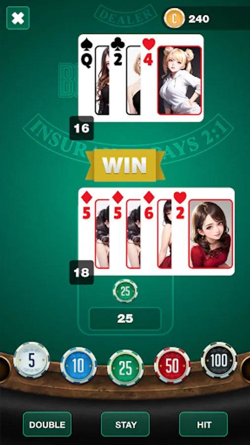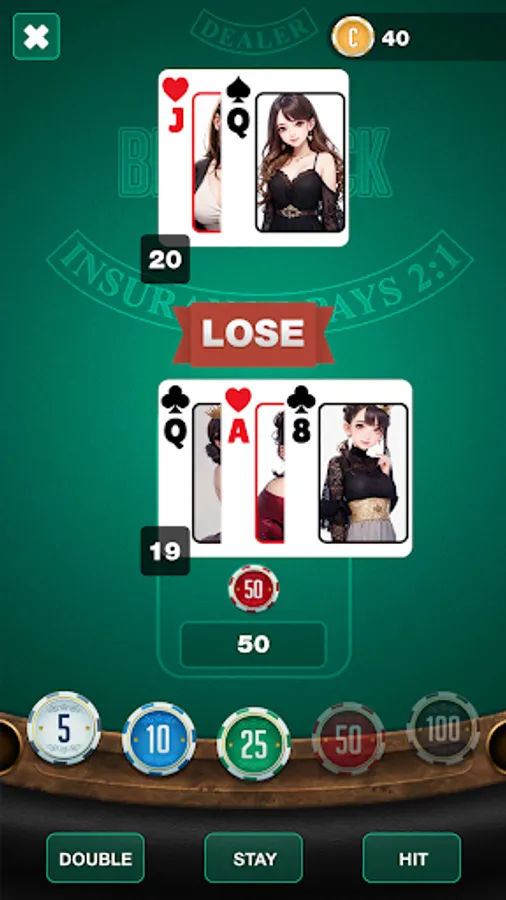 Sexy Blackjack Girls is the best way to perfect this timeless table game for fun, offline and completely risk free! Similar to Twenty One, Pontoon and Vingt-Un, this Las Vegas casino classic challenges you to try and get as close to 21 as possible to win the jackpot. Bet big to win big, or play the long game and prove you can beat the dealer! With free chips, you can play this casino style game with no risks, and with random cards, our games are guaranteed fair and fun!