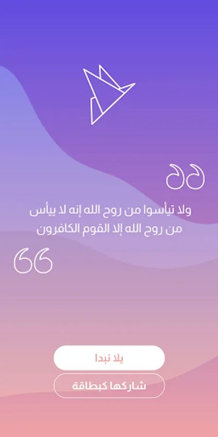 Bushra application receives you with prayers from the Holy Qur’an that give positive and messages that provide optimism as soon as it is launched, with the ability to share and spread this positive to the dearest people through one click on any other application.