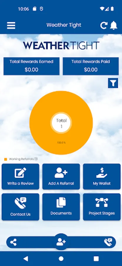Weather Tight Portal is a free app available for anyone to download and is used for those that want to earn rewards by sending referrals to Weather Tight Portal. It is as simple as downloading the App, selecting the sales rep and registering. Once registered, you can begin sending referrals right away. It is the one app that will allow the user to easily submit referrals to Weather Tight Portal and track the progress of your referral and rewards right on your mobile device. Referring has never been so easy.