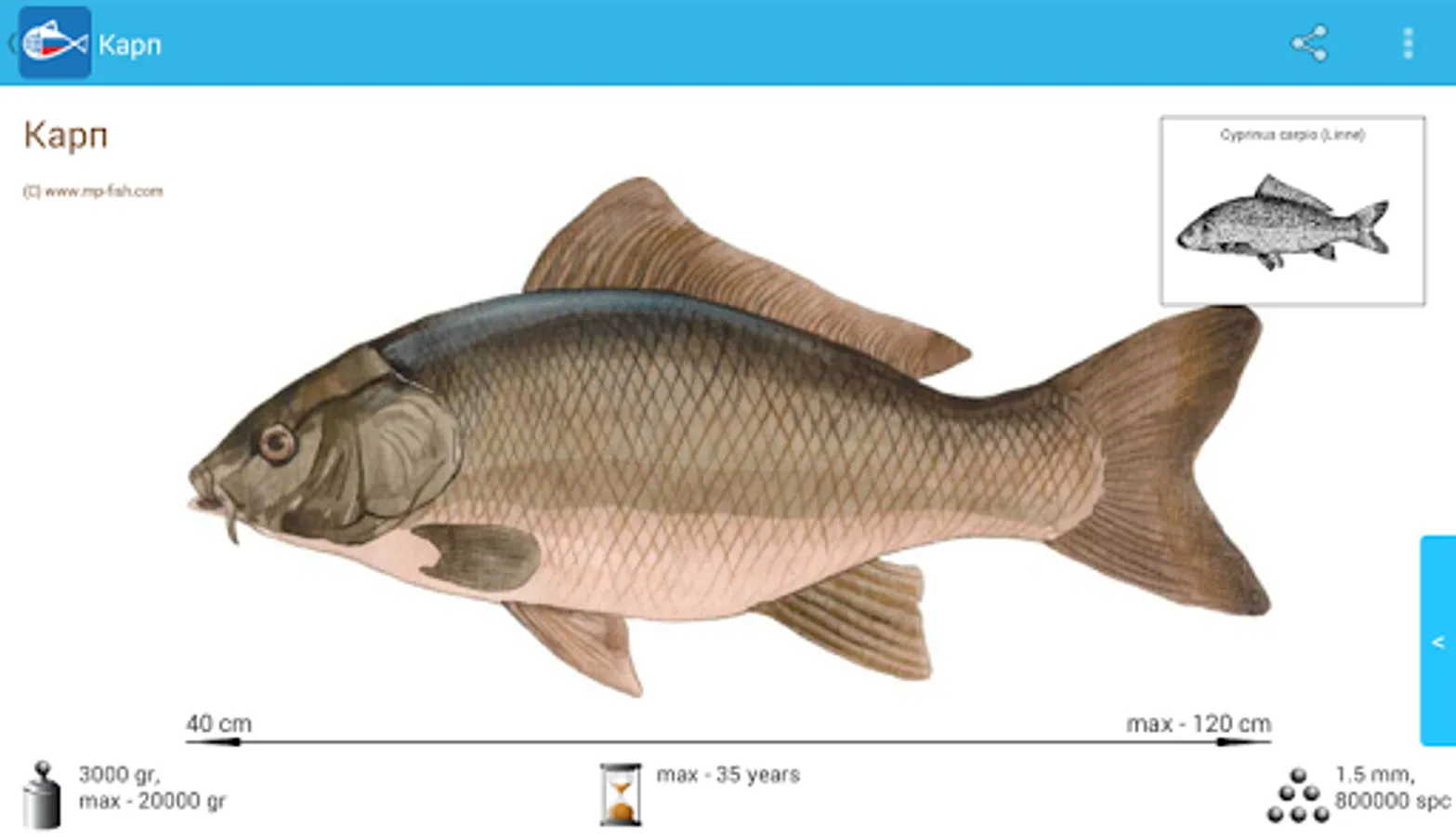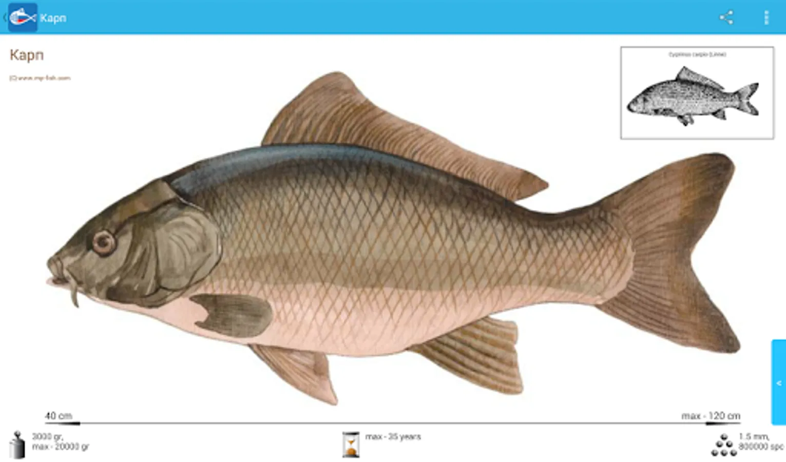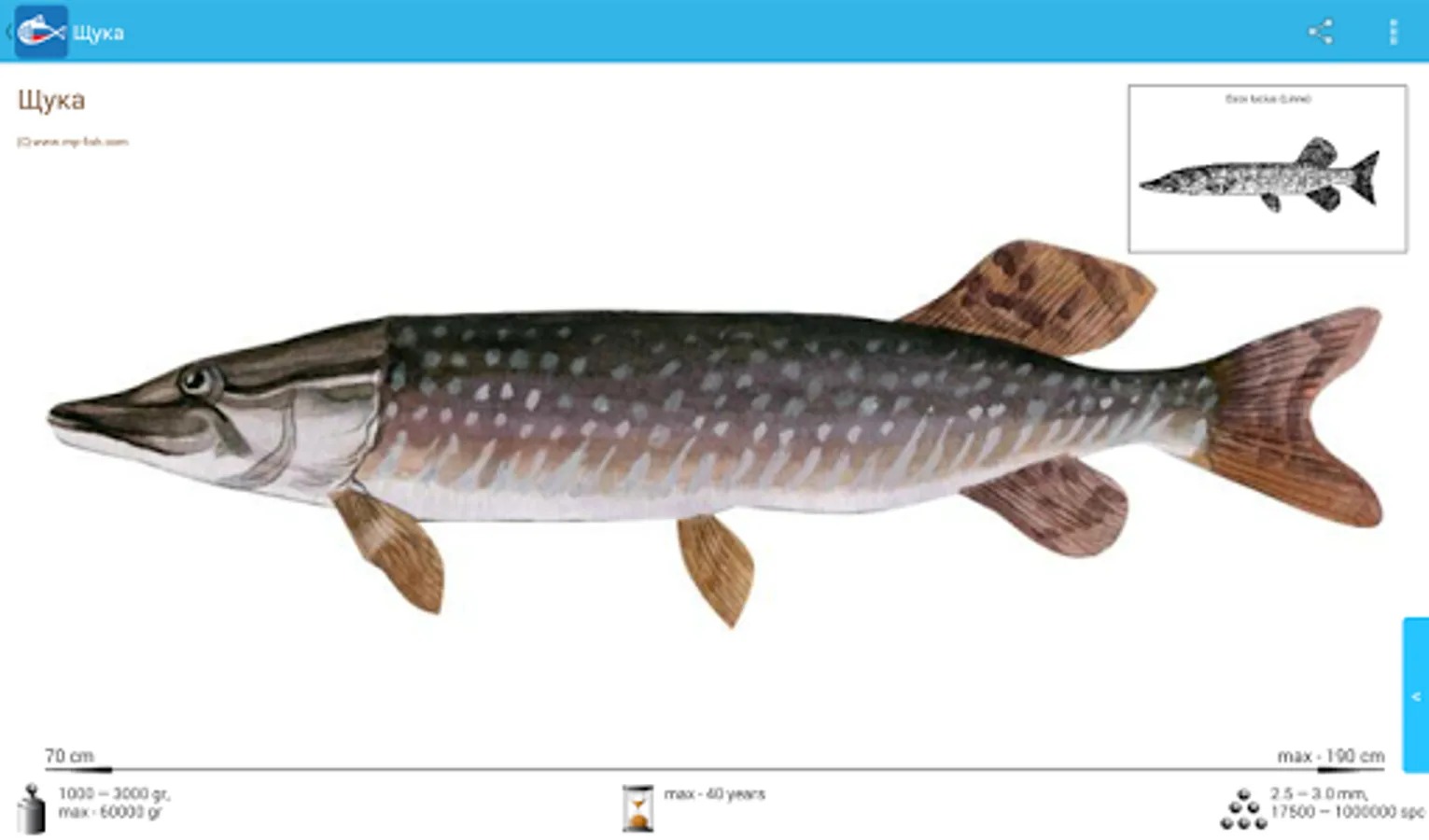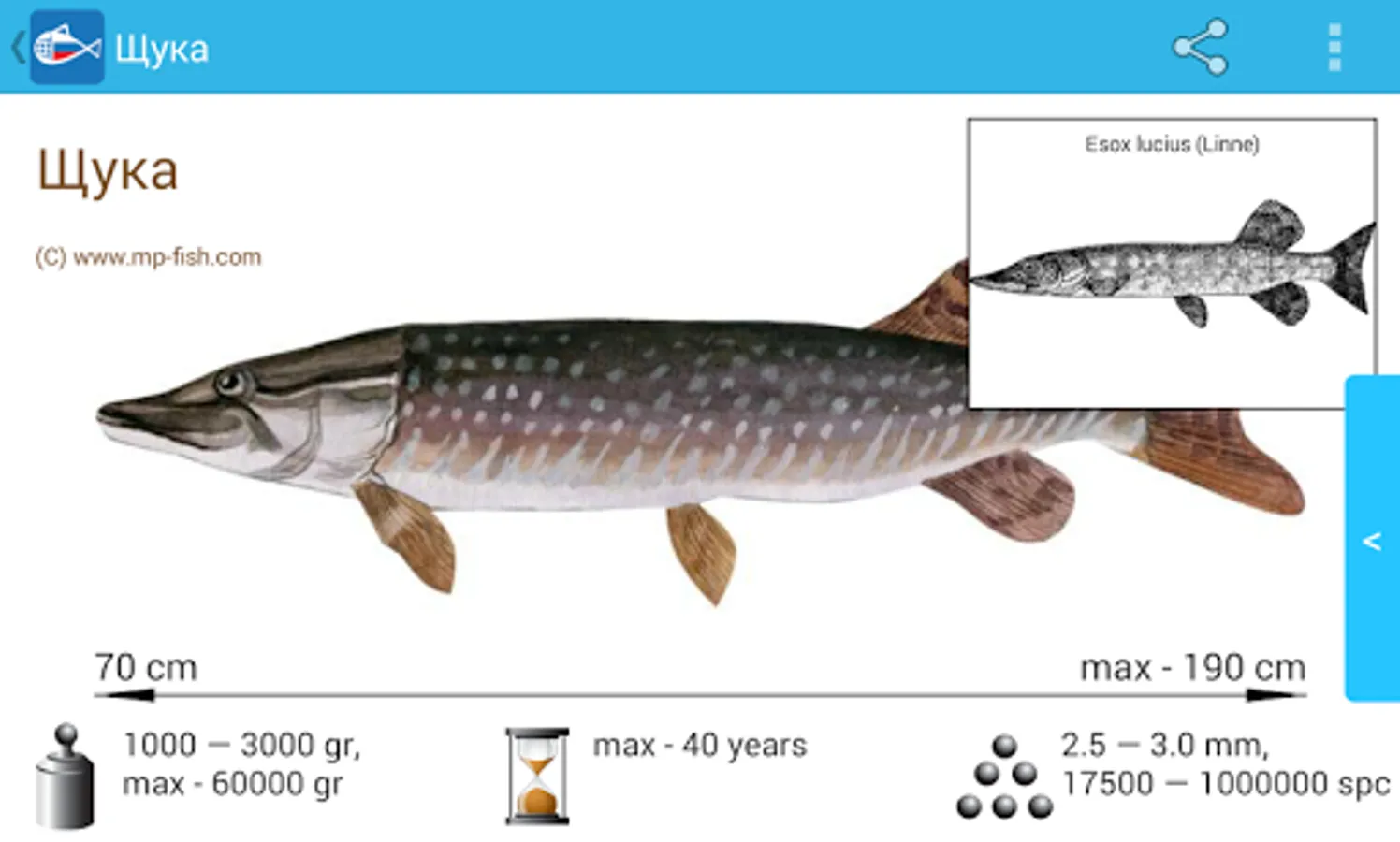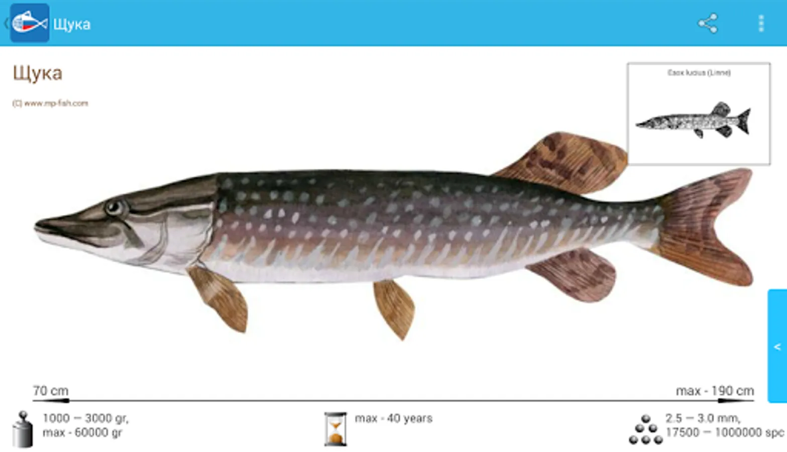Directly from the encyclopedia of fish do fish calendar for this type of fish - if you have installed the application calendar Fisherman MP-Fish (a separate application).