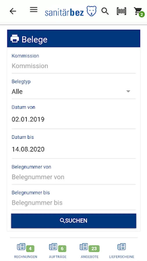 - calling documents (inter alia, delivery notes, order confirmations, invoices) for the mobile