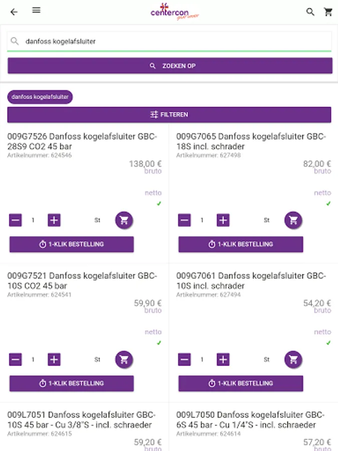 The app is specifically intended for Centercon customers. Create your login code via our webshop at www.centercon.nl or request a login code via sales@centercon.nl.