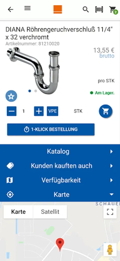 In addition, the availability of the desired products will be displayed directly in the various locations on request. The various branches can be found by the integrated navigation system with just one click for you.
