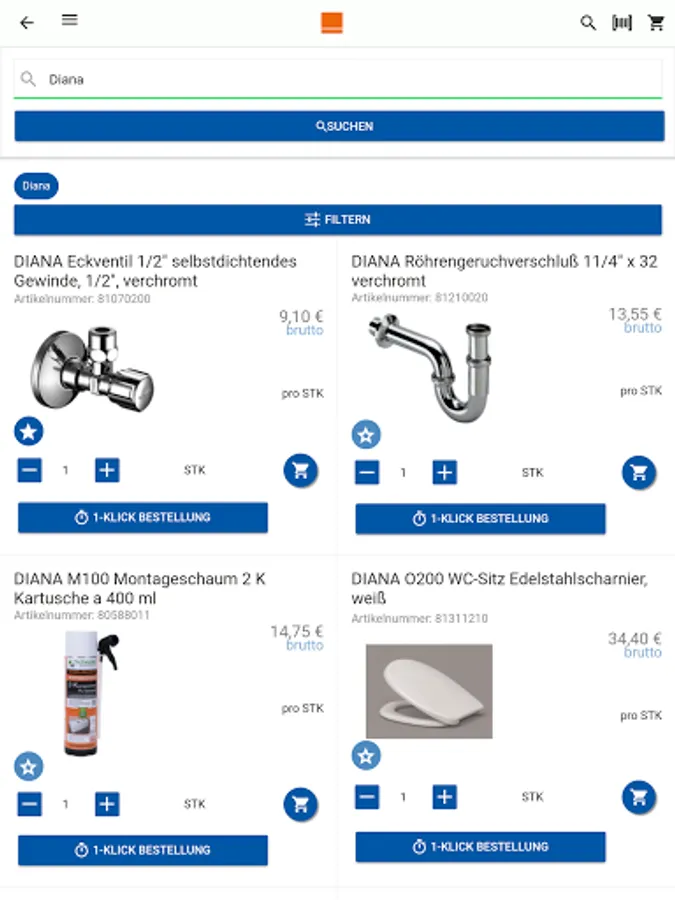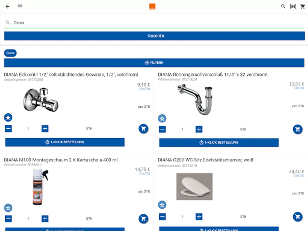 Besides the well-known product search barcode scanning is now possible for you. The representation in images allows you to connection dimensions of the products to see.