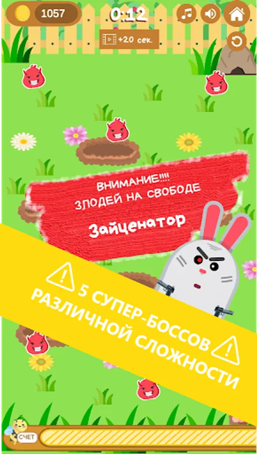 🎮 Angry Gardener is not just another whack a mole game,❤ it's a one of a kind game for kids and adults! During the game, you need to go through more than 45 levels with unique enemies, interesting power-ups, bosses and mini bosses.👻