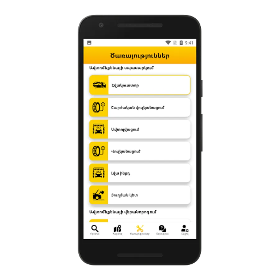 The app is designed to help drivers with car problems. At the touch of two buttons in the application, the driver will find the service point of interest on the map.