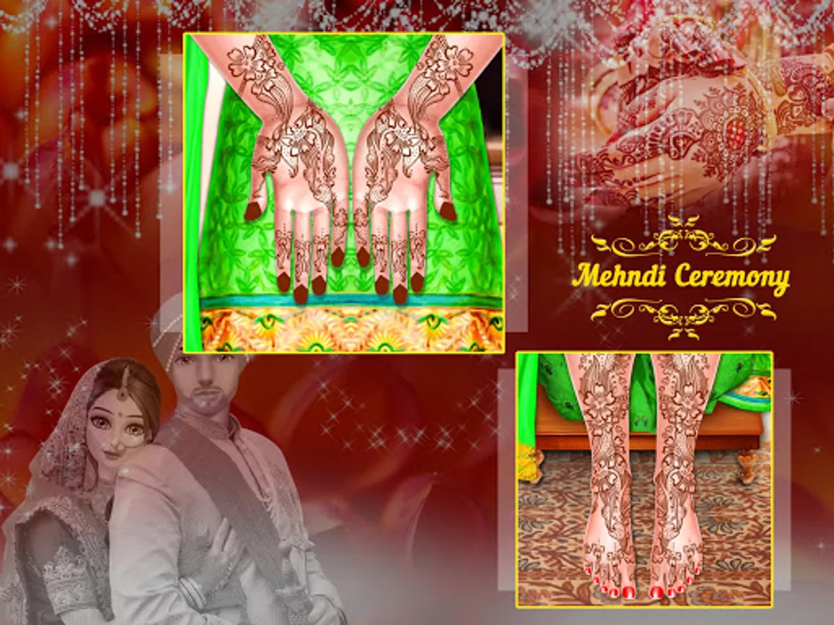 Mehndi is a ceremonial art form which originated in the ancient Indian subcontinent.Artist create intricate designs with mehendi on the palm of the hands and feet of the bride.