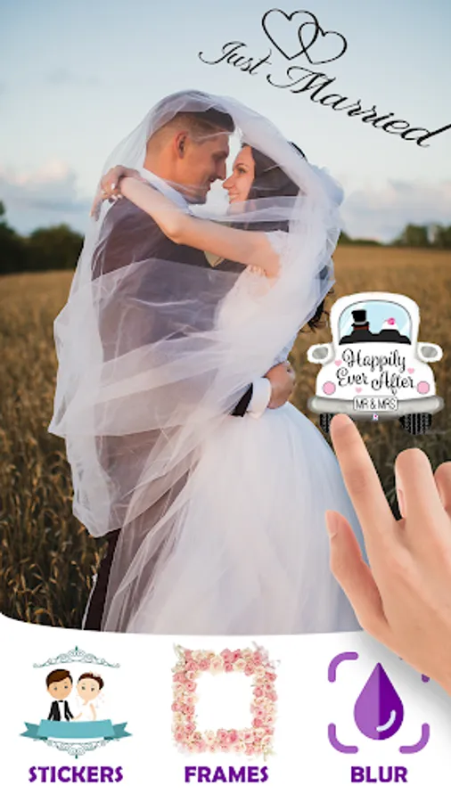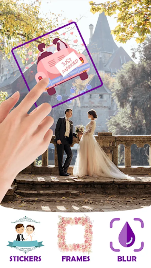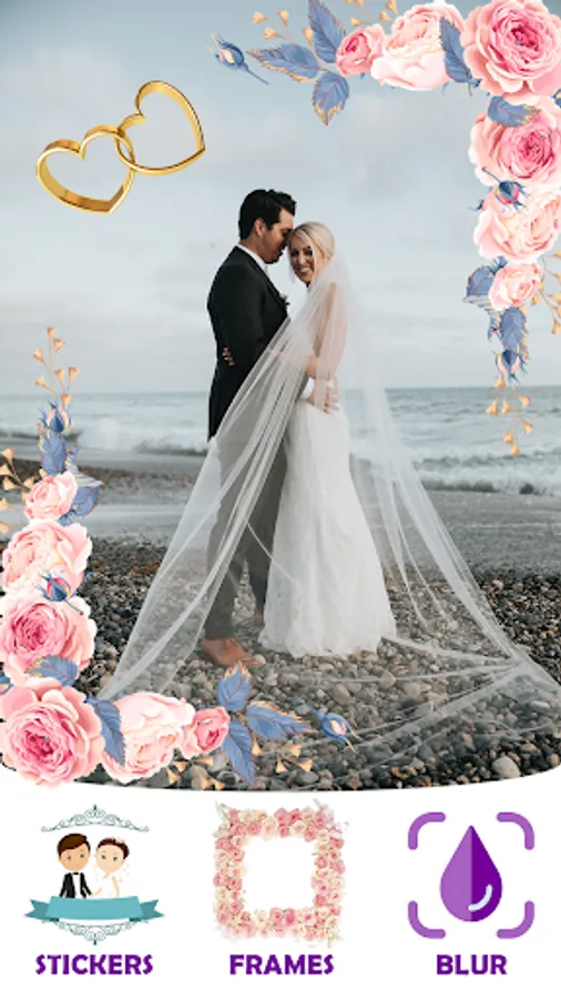 Whether you want to enhance the colors or add a touch of romance, Wedding Photo Editor has you covered. With just a few taps, you can apply wedding stickers for pictures. Use your fingers to adjust the size and position of stickers to create the perfect wedding photo montage.