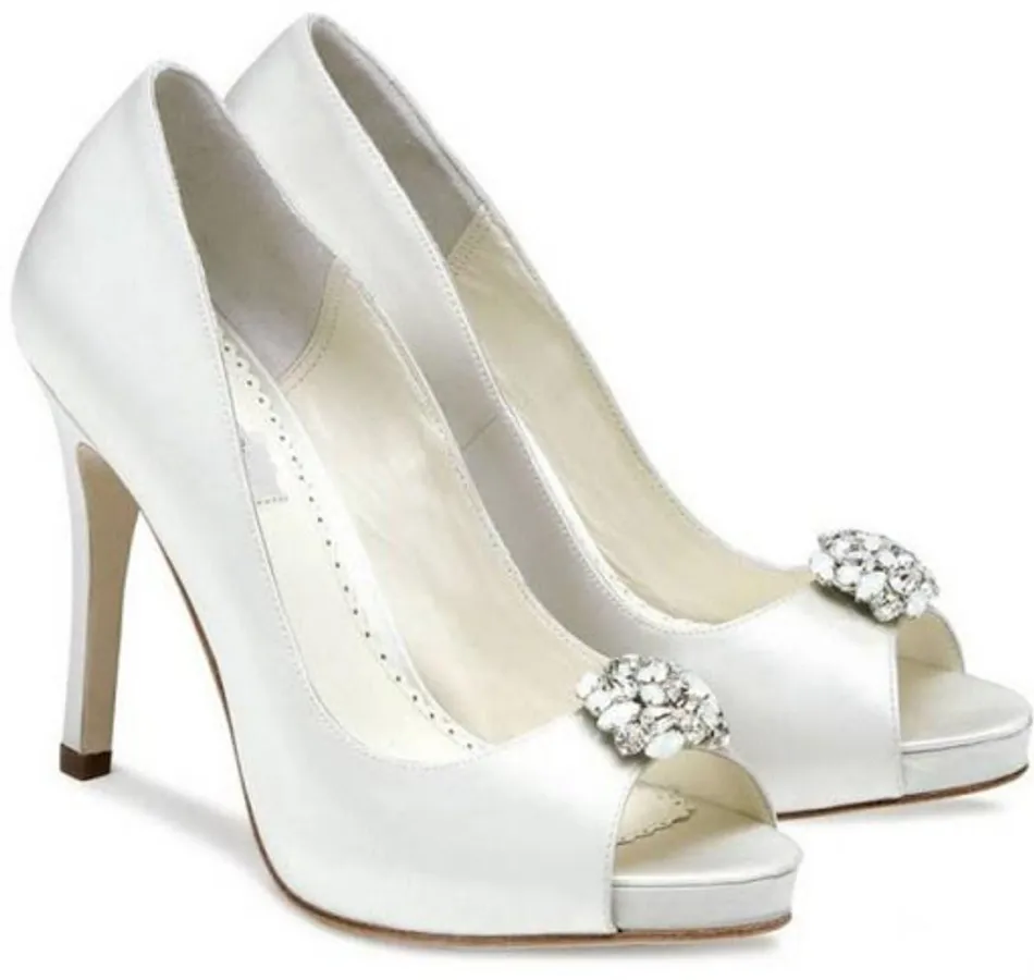 So what should you look for when buying your shoes? The prime factor should be comfort. Sound strange to you? It actually makes perfect sense when you think about it. Your wedding day is not going to be something you'll be sitting down for- there will be a lot of walking, standing for photographs, socializing and dancing. In fact something as simple as navigating a flight of stairs can become a little tricky in a flowing wedding gown. In order to get through all that with a smile, you need make sure every part of you is comfortable, especially your feet.