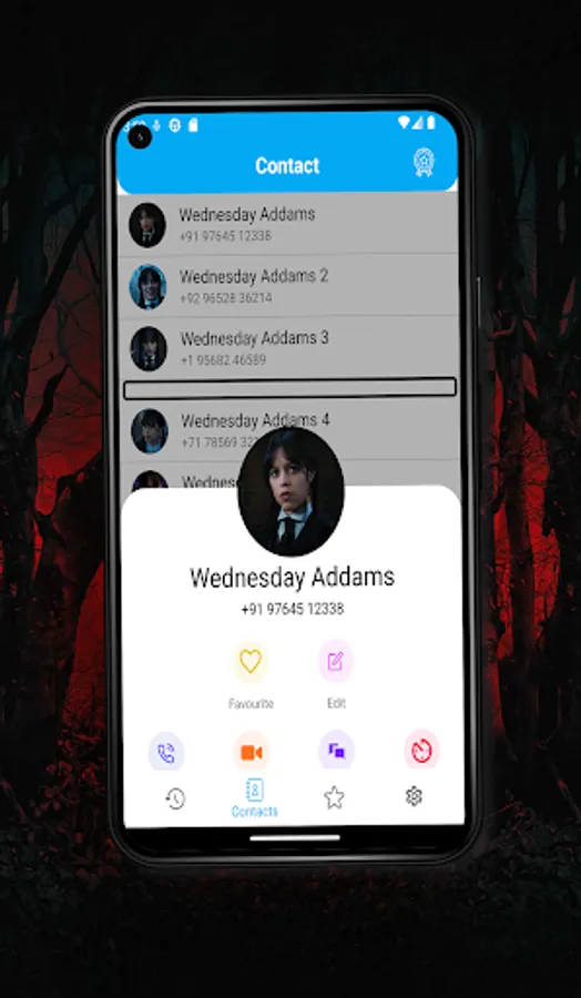 Make fun with your friends and family that Wednesday Addam is calling you but nobody knows that this is a prank you are doing with them. Make fun with a fake calling simulator with the Wednesday Addam characters. This fun-purpose app is here with a timer option when you want to receive calls from the Enid Sinclair. The play time character incoming call or outgoing call will be for fun to make your boring time into a funny one.
