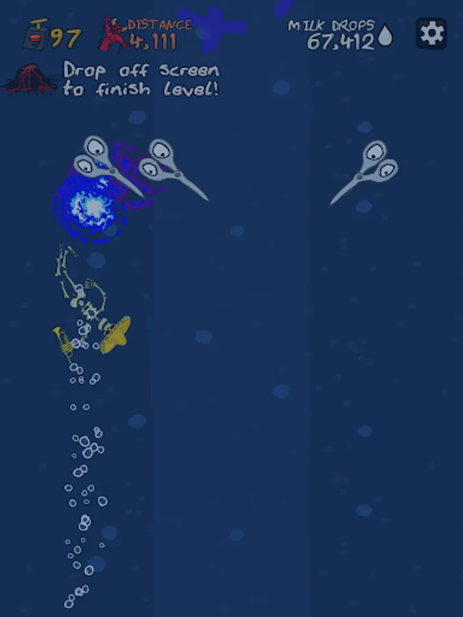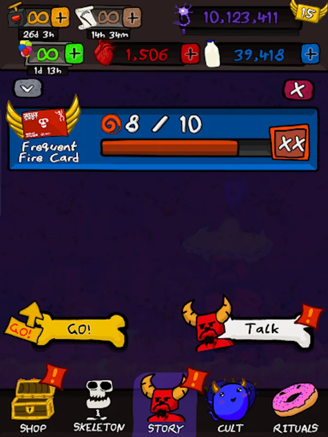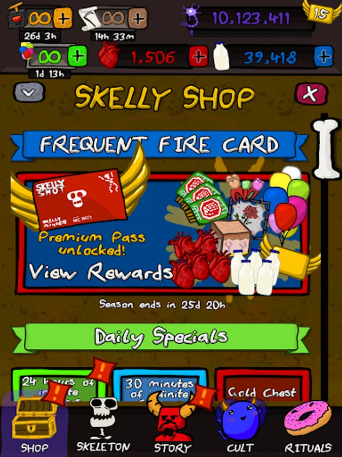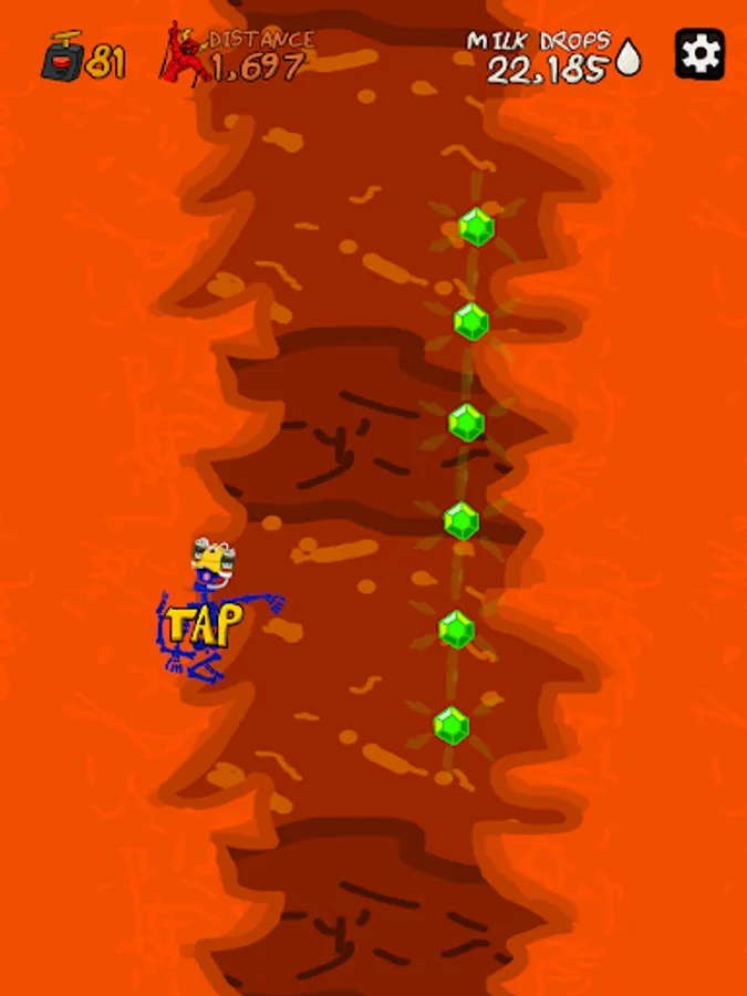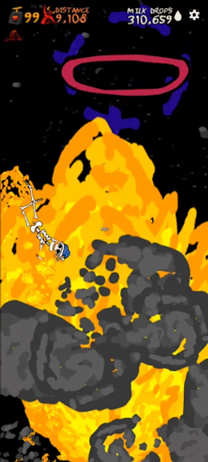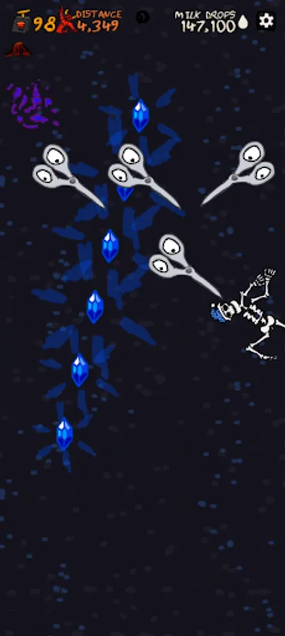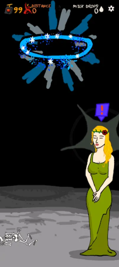 While trying to get a glass of milk, Skelly is dropped into what appears to be hell. With no muscles to speak of, it's up to you to help them. Find a friendly red person, rubber bands, explosive junk, teeth, hearts and more explosions to help get your fridge back. What adventures await you on your mission?