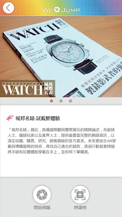 可以藉由AR鏡頭跟內容進行互動,只要是WE JUMP支援的辨識圖片,用手機一掃,