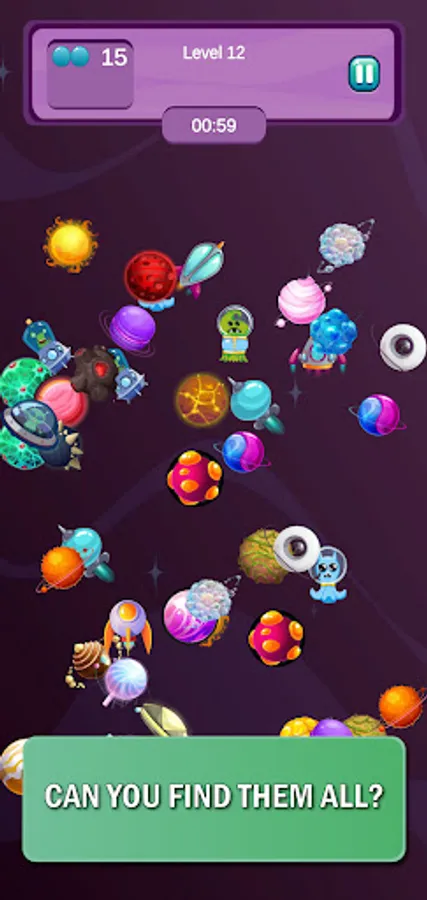 - Simply find and tap two or three identical objects until you clear all twins and triplets.