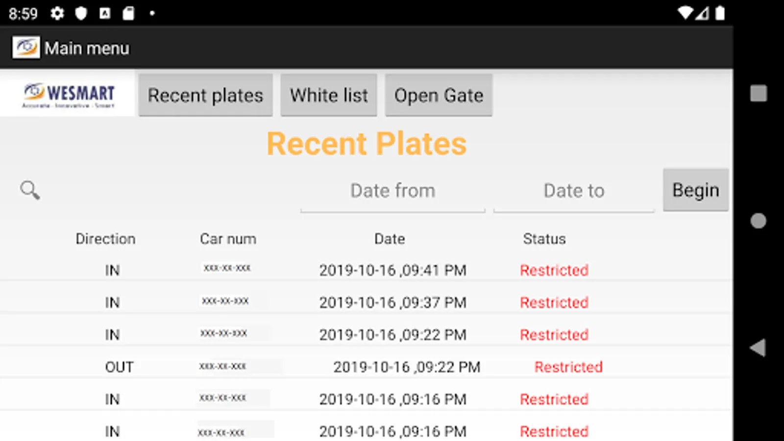 The Smart Gate application is software that shares ONLINE information between the user and the company software "Wesmart", which sits on the enterprise server that uses it. The app allows physical gate control. This option is only available to vehicles registered in the database on the server. That is, only after registering each user according to the needs of the organization will access the app and hence physical access to the organization's premises. In addition, the app allows control of the gate in several respects - opening it (anywhere), controlling the display of all user-authorized vehicles, as well as adding new access permits. The app allows you to view and control the log entries of vehicle entrances and exits in the organization. (The software is intended for any domain with a server from "Wesmart")