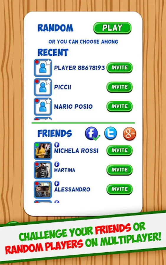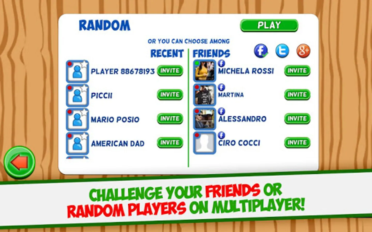 - MULTIPLAYER mode where you're able to challenge your Facebook/Twitter/Google+ friends or a random player among more than 2 MILLIONS players from all over the world!