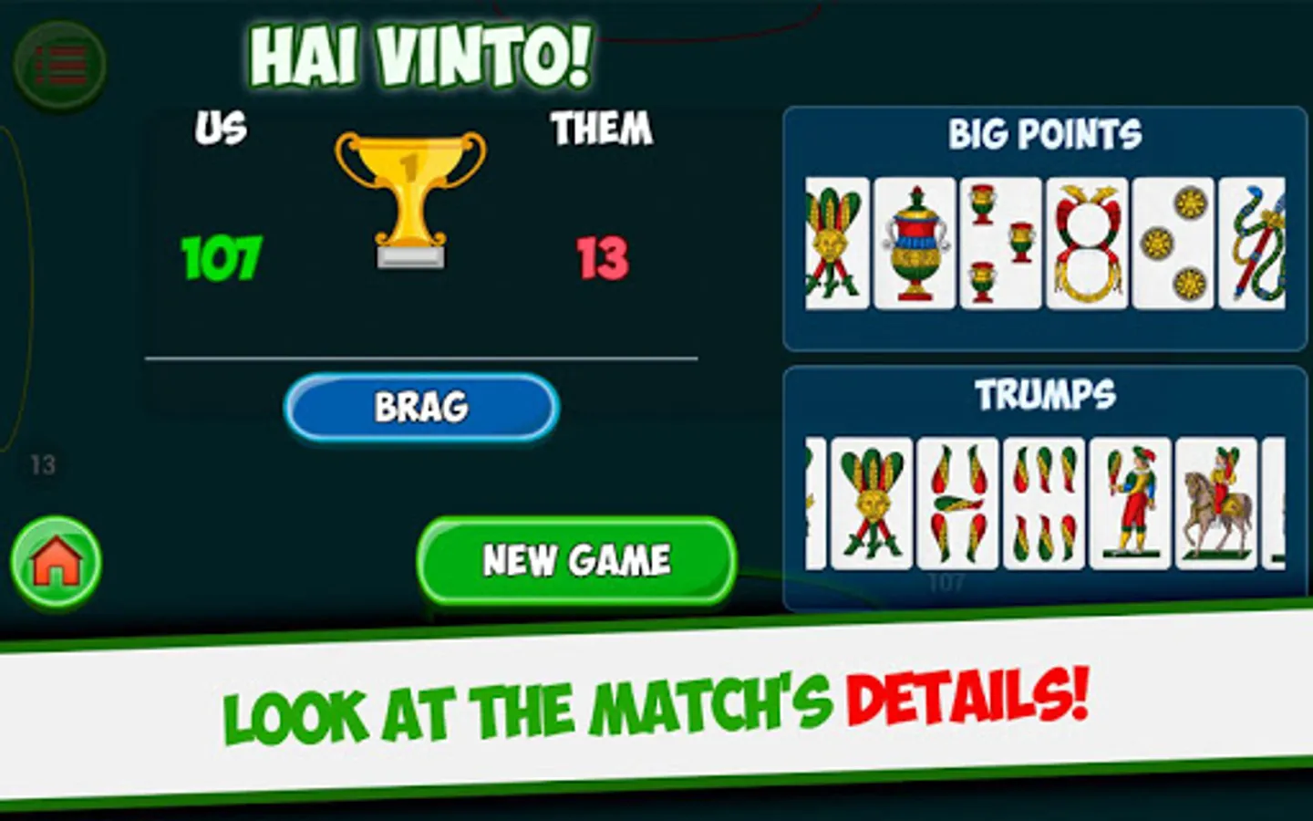 You'll love Briscola because of its beautiful graphics, spectacular animations and great sound effects!