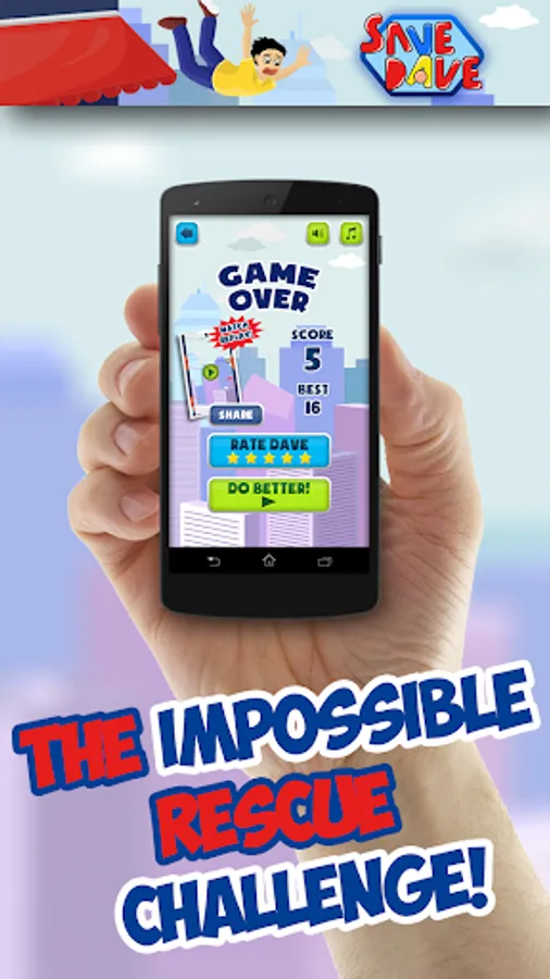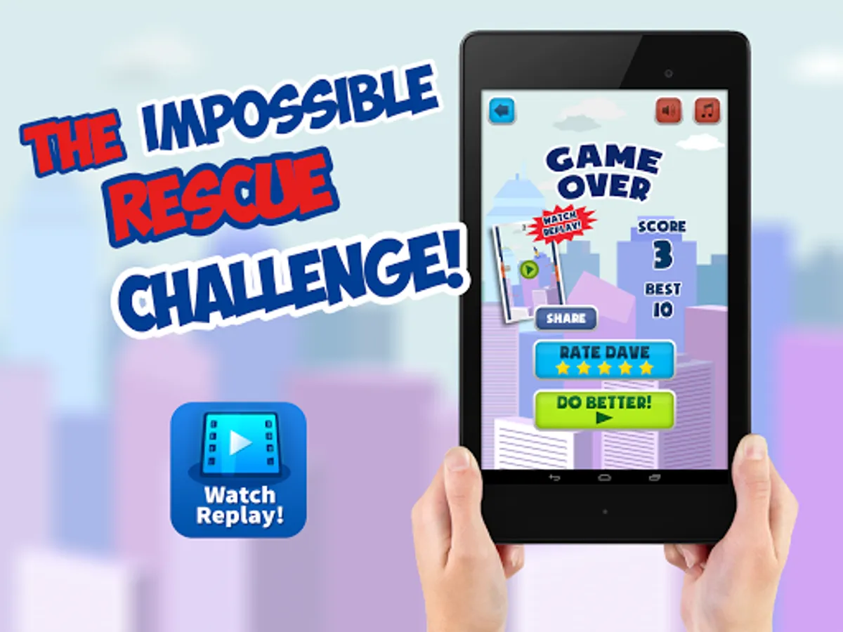 To save him, the rules are simple: tilt your phone to help Dave bounce on awnings and avoid his tragic imminent death!